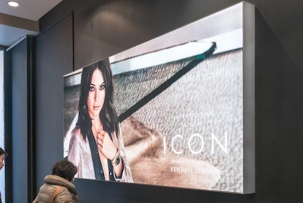 LED-lit frames with tensioned fabric graphics. Offers high-resolution visuals with a modern, seamless finish.