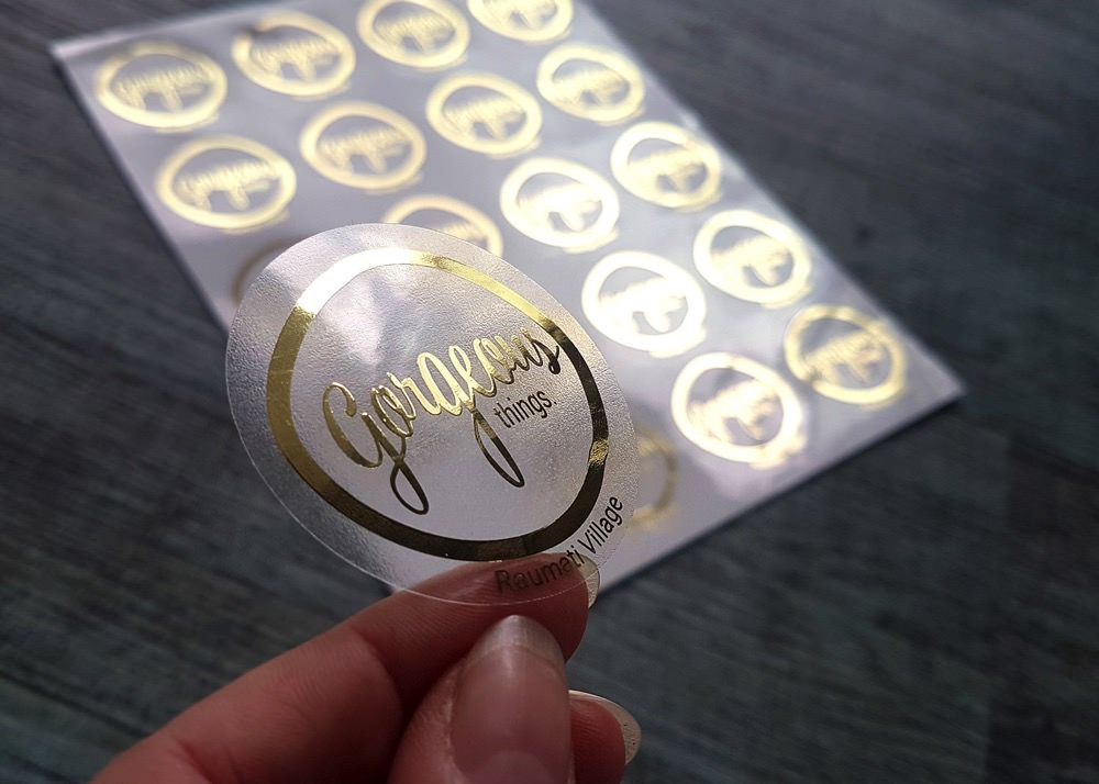 Metallic foil stickers in gold, silver, or custom colors for a luxury finish.